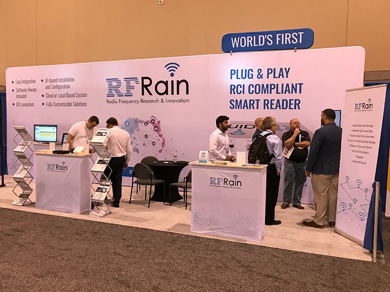 We introduced the launch of RFR-RAIN-4-SMART, world’s first plug-and-play smart reader at booth #913. The RFRain Smart Reader supports up to four monostatic antennas, which covers a tag read distance that is over 80 feet with 9 dBiL antenna. It supports the tag reading speed for moving objects at 100 mph. Access and control the reader from any browser using the built-in UI. Our booth featured two demo stations, the doorway system and the smart cabinet. Both applications/solutions display the complete RFRain system using our new smart reader. The doorway system equipped with two antennas attached to a smart reader shows the tracking of assets passing through the system. Our engineers wore UHF passive tag embedded wristbands that would track the directional movement when entering or exiting the doorway system. Data was available in real-time on the Zone Manager software. The Smart Cabinet system is equipped with antennas on each shelf. When an item is removed from the shelf. The reader would process the data and report the item as missing on the Zone Manager software. Our engineers demonstrated to attendees how to identify and track items on the Zone Manager and the notification feature that sends alerts through text message or email when an item becomes missing. Thank you to all the visitors and organizers who came to our booth. We were thrilled to share our newest technology with clients and with the positive reception we received from attendees.